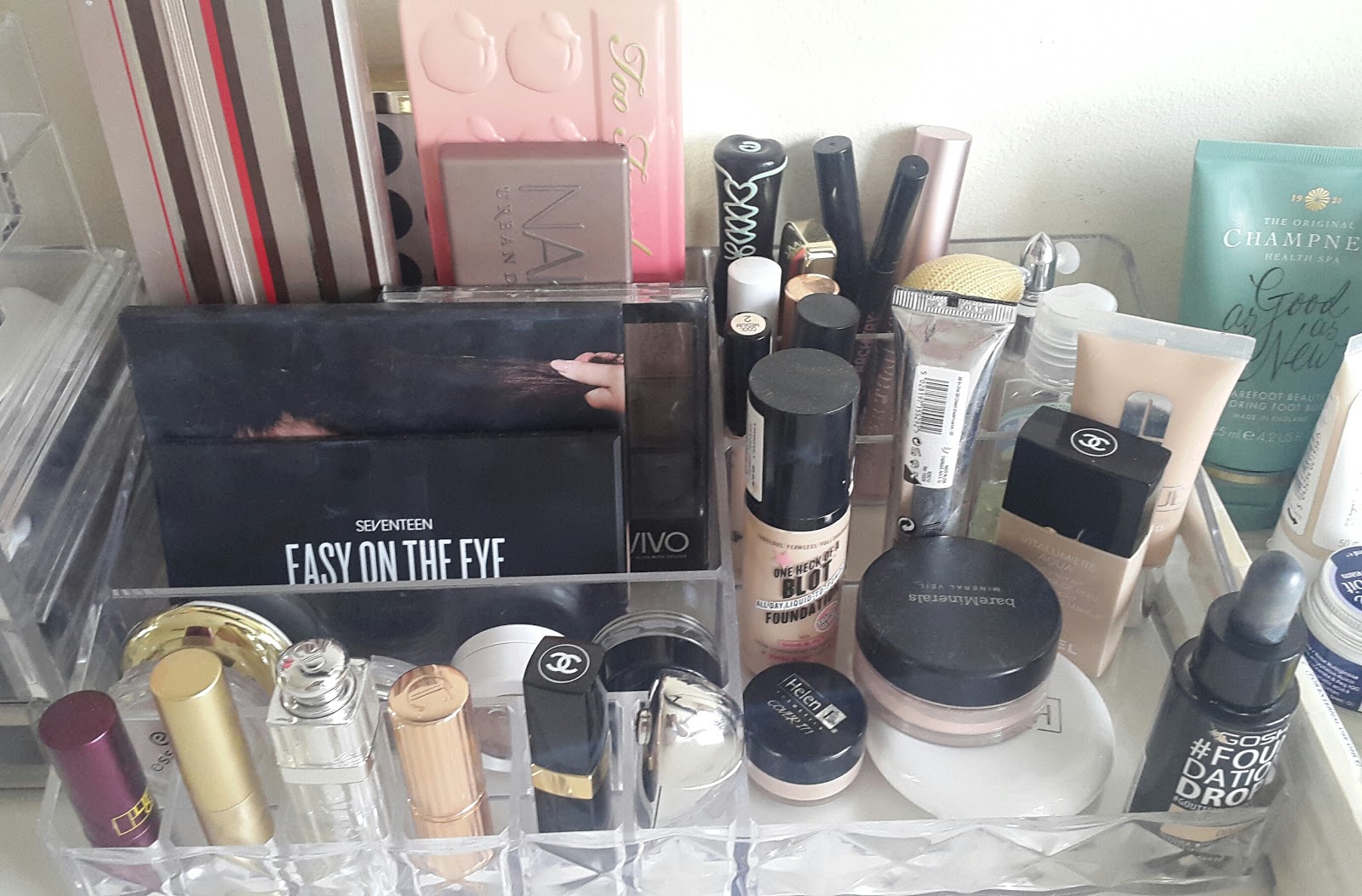 Then right at the front we have Foundations, Soap and glory (review here), Gosh (review here), Helen e (review here), Chanel (review here) and Clinique (review here).