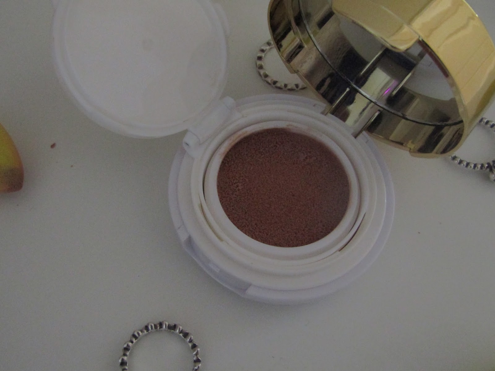 The product comes in this gold and white packaging which looks very sleek, inside in contains a mirror (bonus), sponge applicator, then the product.