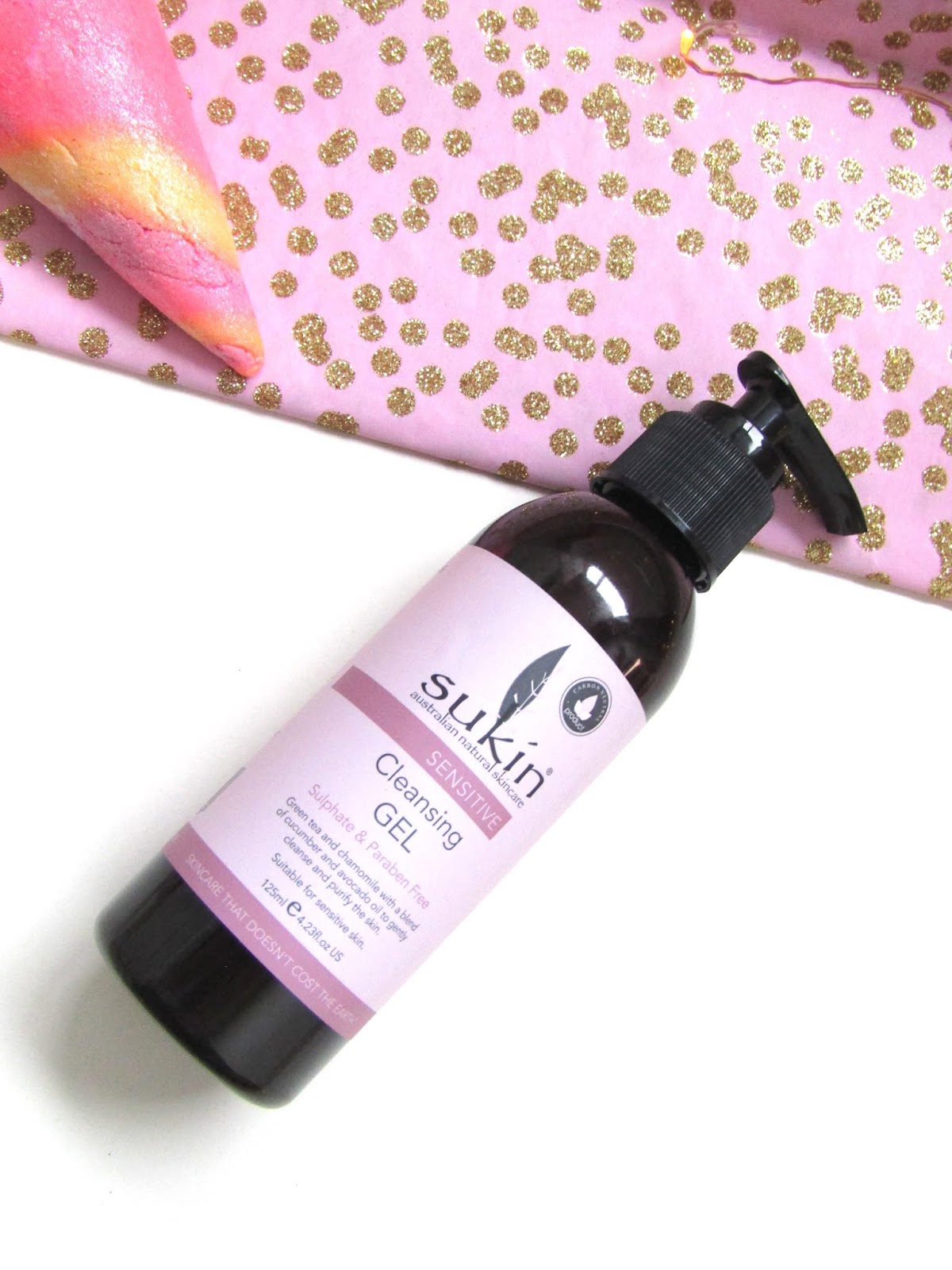 This product claims: 'Sukin's soap free Sensitive Cleansing Gel provides a gentle, non-drying cleanse to help remove impurities and excess oils. A blend of Green Tea, Cucumber, and Avocado Oil work to gently clean, refresh and purify, leaving skin feeling soft, clear and balanced. This is the perfect cleansing option for combination/oily skin types who have sensitive skin.' (Source Boots)