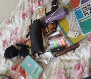 On the other side in the other compartment stores my student planner and my blog post note pad.