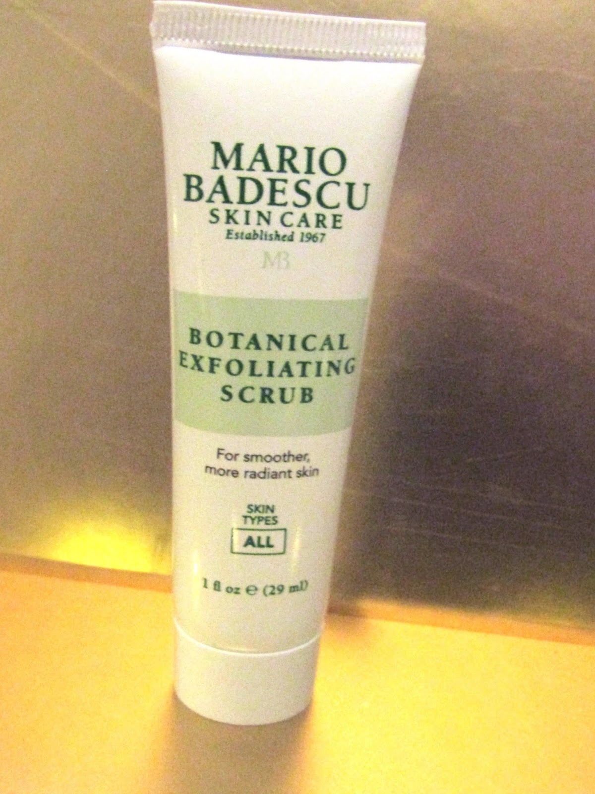 The product claims to 'Mario Badescu Botanical Exfoliating Scrub refines and perfects all complexions.